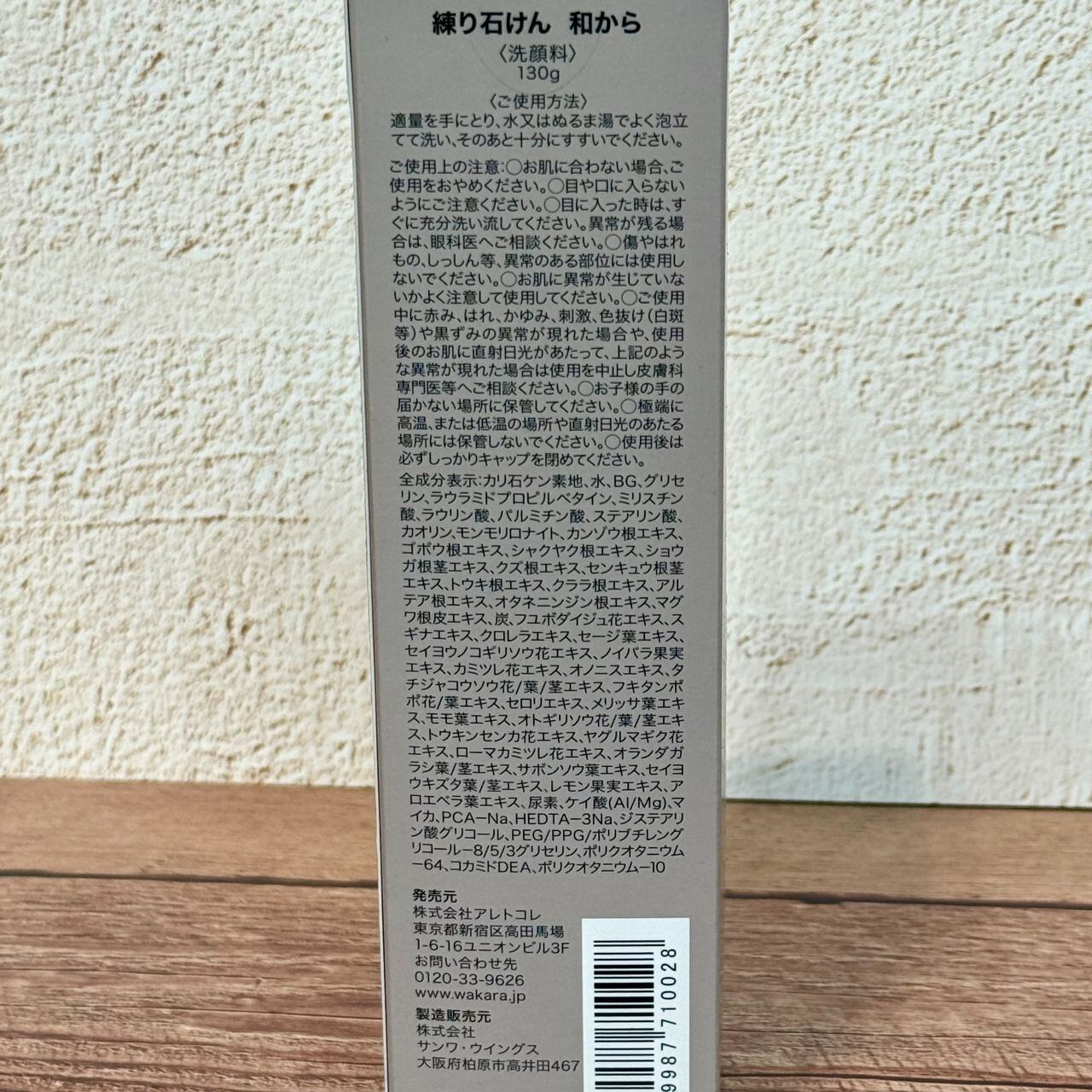石鹸作りの老舗製造会社が手掛ける伝統の練り製法でできた和からの石鹸は美肌成分60%、洗浄成分40%のバランス配合で、うるおいを残しながらしっかり落とします。また、少量でもちもちの泡が立ち、肌に負担なく毎日の洗顔が行えます。