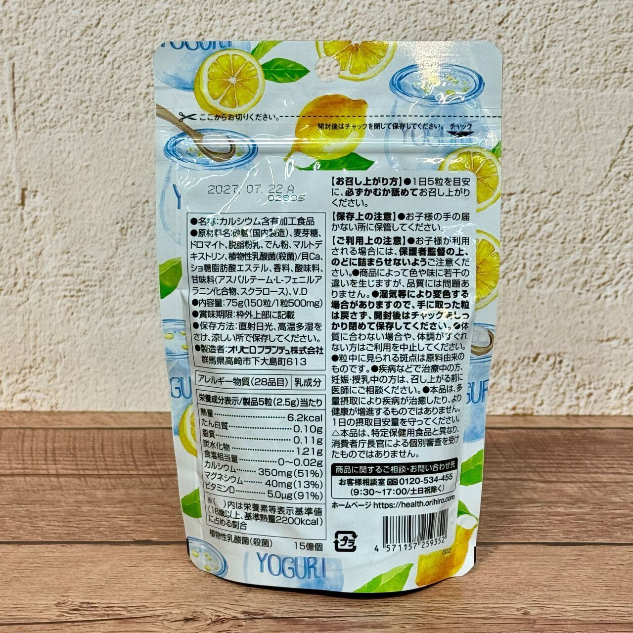 美味しいチュアブルサプリ カルシウム+乳酸菌 レモンヨーグルト味