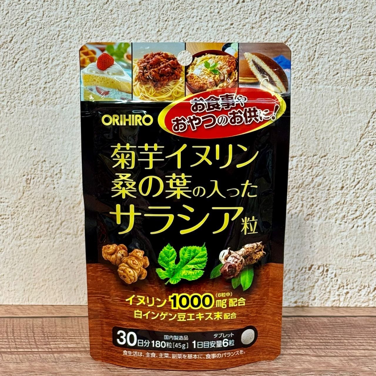 サラシアエキス末30mg、菊芋末 150mg、イヌリン1000mg、桑の葉エキス末 30mg、白インゲン豆エキス末 20mg