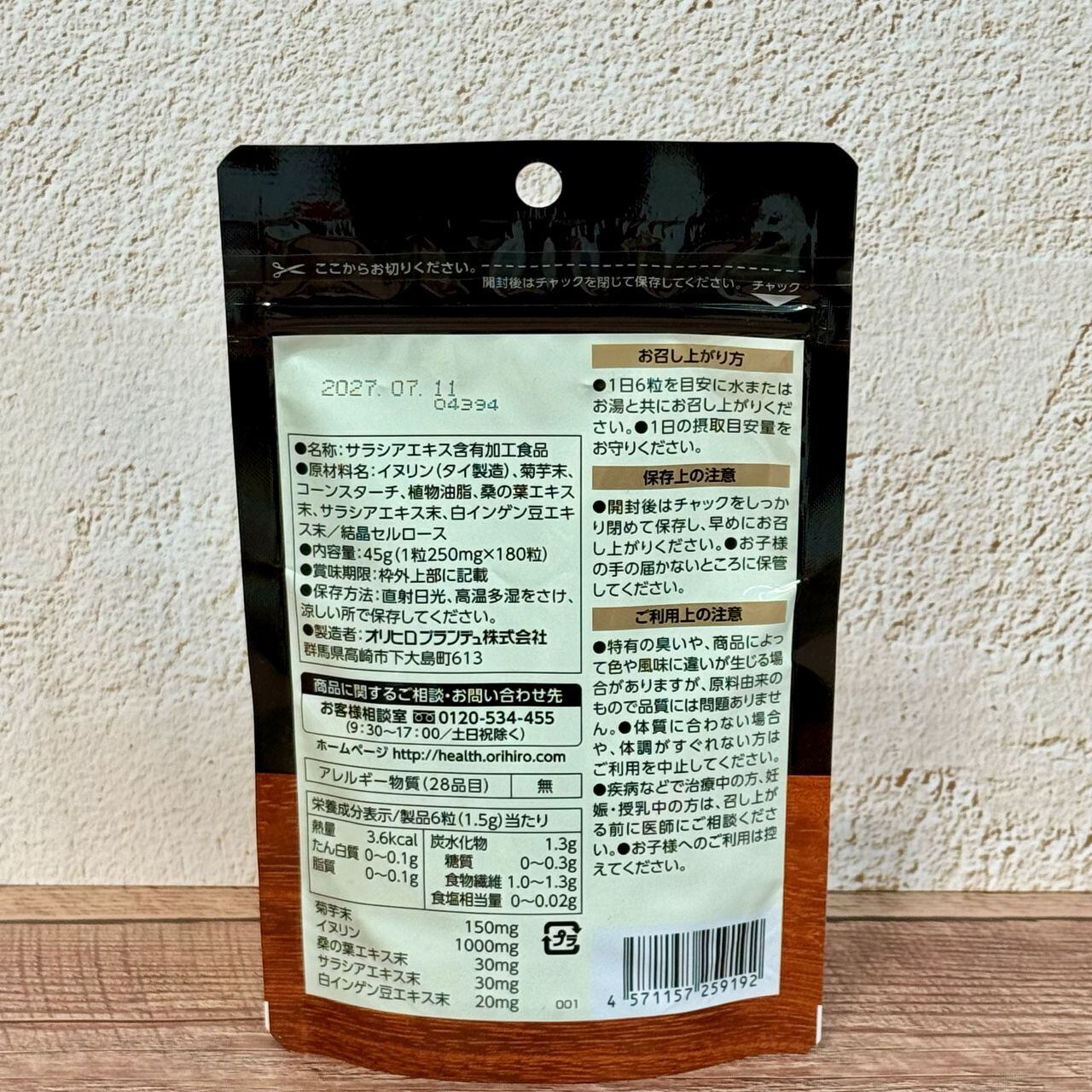 イヌリン、菊芋末、コーンスターチ、植物油脂、桑の葉エキス末、サラシアエキス末、白インゲン豆エキス末/結晶セルロース