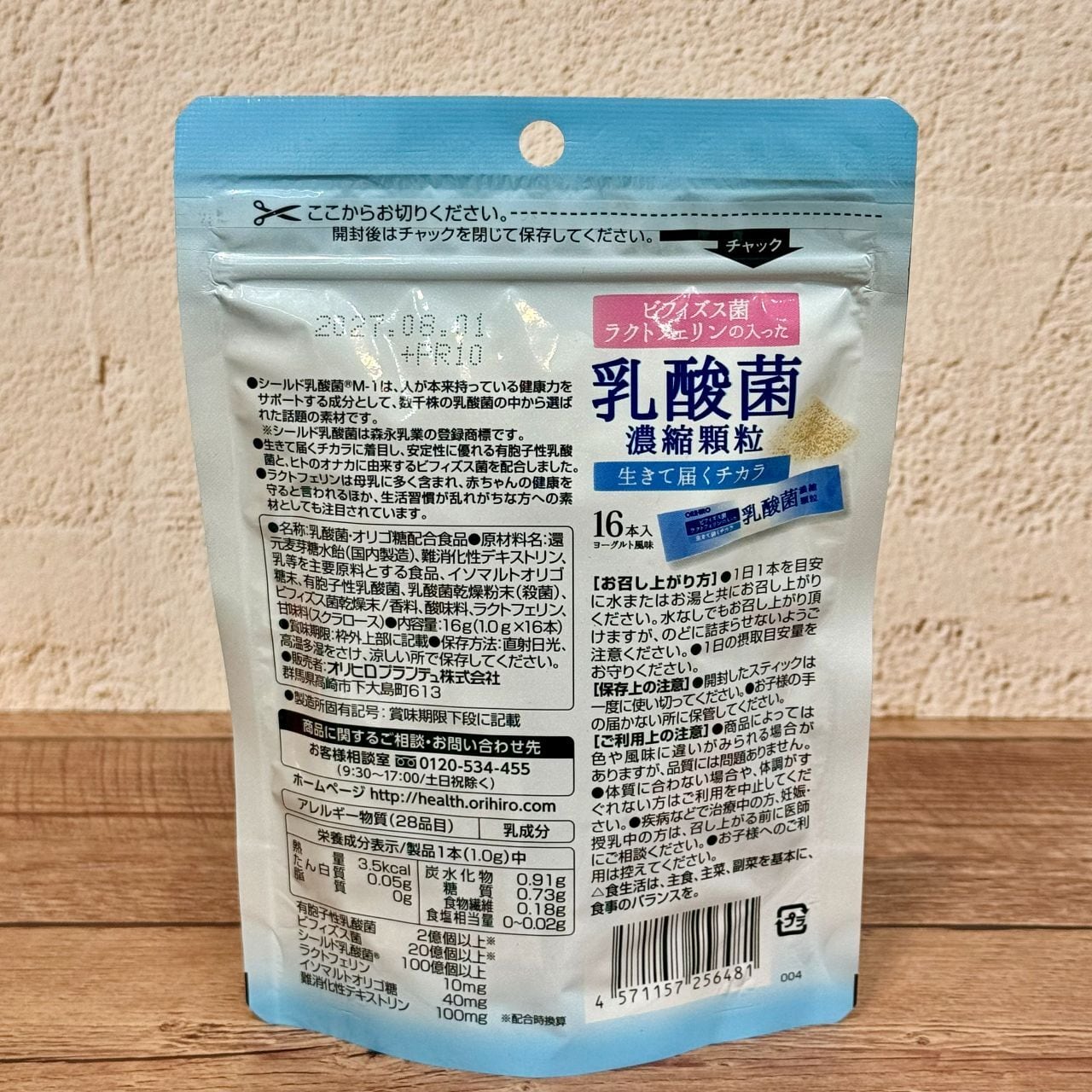 還元麦芽糖水飴、難消化性デキストリン、乳等を主要原料とする食品、イソマルトオリゴ糖末、有胞子性乳酸菌、ビフィズス菌乾燥末、香料、酸味料、ラクトフェリン、甘味料(スクラロース)